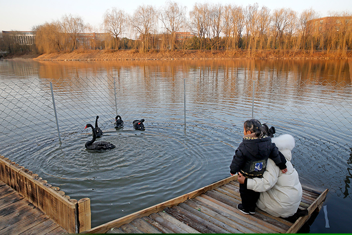 “眼下正是寒假,临近春节,校园里学生很少,这时候,可以减少人员对天鹅生活的干扰,有利于它们尽快适应学校新的环境。学校在樱花岛上专门围了一块地方供天鹅生活,待训化后再让它们在整个校园里活动。”盐城工学院后勤服务集团副总经理周云峰介绍,他希望师生在观赏天鹅时,远离湖水,注意安全,不要投食,不要大声喧哗,不要驱赶、惊吓黑天鹅,不要翻越防护网,做文明观赏者。